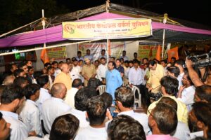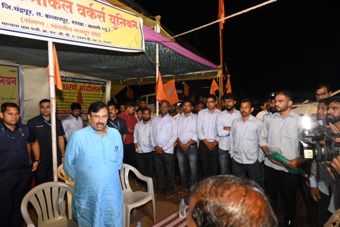 ना. सुधीर मुनगंटीवार यांची बामणी प्रोटीन्स येथील ठिय्या आंदोलन मंडपाला भेट