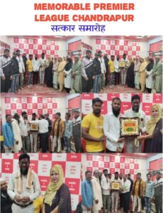 चंद्रपुर शहर की मुस्लिम महिला संगठन खवातीन ए इस्लाम ने पिछले नव सालो से मेमोरेबल प्रीमियर लीग क्रिकेट स्पर्धा के जरिए नौजवान खिलाड़ियों को अपनी प्रतिभा दिखाने का मौका मिलता आया है दिनांक 29.11.2024 को मुस्लिम महिला संगठन ने मिलकर मेमोरेबल प्रीमियर लीग के सभी सदस्यों का सम्मान किया गया पुष्पगुच्छ हाजी रूमाल और सम्मान चिन्ह देकर