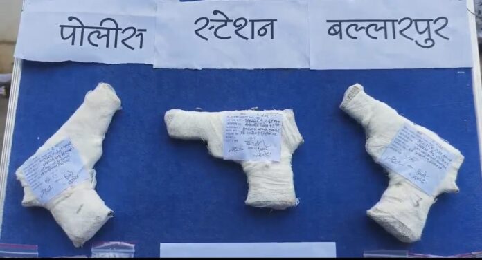 अपराधियों के खिलाफ बल्लारशाह पुलिस की धड़ाकेबाज कार्रवाई जारी है थानेदार सुनील गाडे के नेतृत्व में बल्लारशाह पुलिस ने दो अलग अलग मामलों में पांच आरोपीयों के पास से आज 4 दिसंबर को 3 देशी पिस्तौल और 18 कारतूस बरामद किया है,विगत चार माह में अब तक कुल पांच देशी कट्टे बीस कारतूस और तीस तलवारें जब्त की गई हैं.