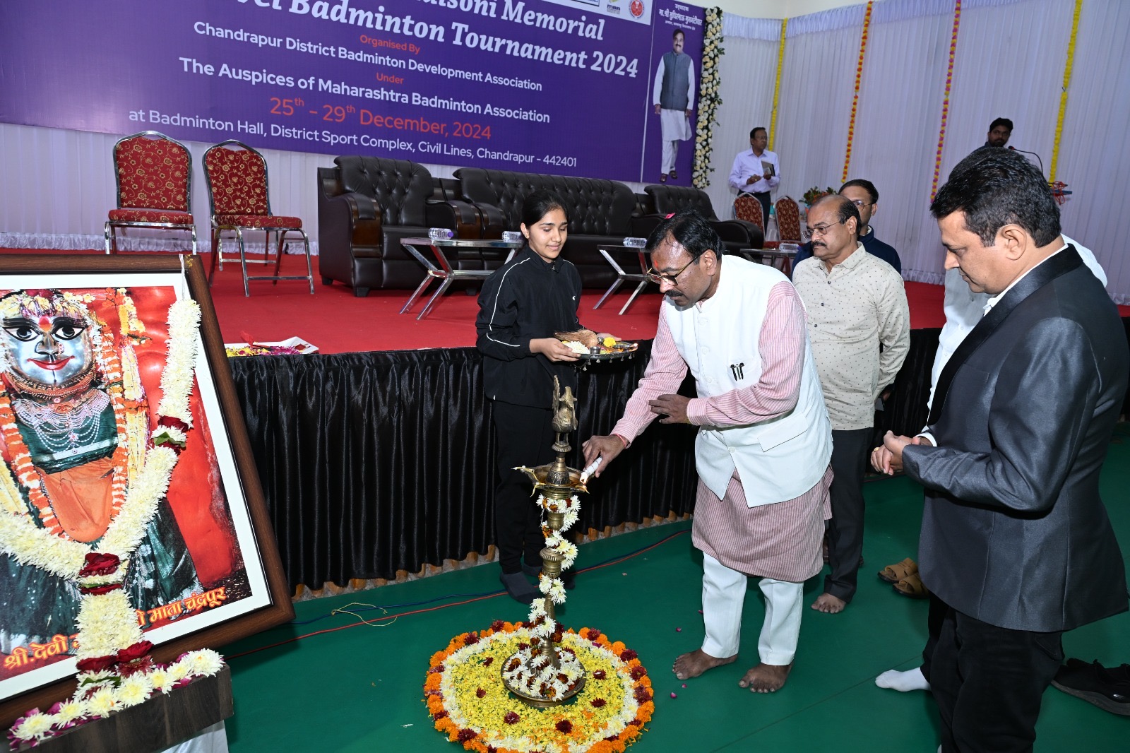 चंद्रपूर जिल्हा बॅडमिंटन डेव्हलपमेंट असोसिएशन व जी.एच. रायसोनी मेमोरियल यांच्या संयुक्त विद्यमाने विदर्भस्तरीय बॅडमिंटन स्पर्धेचे आयोजन करण्यात आले आहे. यावेळी संघटनेचे चंद्रपूरचे अध्यक्ष गिरीश चांडक, उपविभागीय अधिकारी संजय पवार, जिल्हा क्रीडा अधिकारी अविनाश पुंड, राष्ट्रवादी काँग्रेसचे जिल्हाध्यक्ष राजीव कक्कड, मनोज सिंघवी, लक्ष्मीकांत आर्के, संस्थेचे सचिव ज्यो एलजी चांदेकर, विश्वास देशपांडे आदींची प्रमुख उपस्थिती होती.