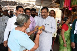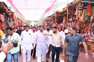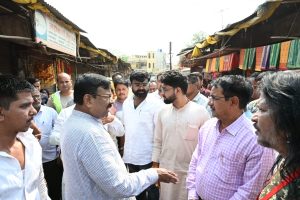 महाकाली यात्रेदरम्यान अनेक छोटे-मोठे दुकानदार आपला व्यवसाय करतात आणि भक्तांची सेवा करतात. मात्र, अलीकडे प्रशासनाच्या नियमांमुळे काही व्यापाऱ्यांना अडचणी निर्माण होत आहेत. यासंदर्भात व्यवस्थापन योग्य व्हावे आणि गेल्या 40 ते 50 वर्षांपासून व्यवसाय करणाऱ्या व्यापाऱ्यांना त्रास होऊ नये, यासाठी आ. श्री. मुनगंटीवार यांनी महाकाली मंदिर परिसरात प्रत्यक्ष भेट देऊन पाहणी केली आणि त्यांच्या अडचणी जाणून घेतल्या. या परिसरातील कोणतीही दुकाने हटविण्यात येणार नाहीत, ती पूर्वीप्रमाणेच राहतील. मात्र, दुकाने रस्त्यावर येऊ नयेत यासाठी नियोजनबद्ध रेखांकन करून त्यांची निश्चित मर्यादा प्रशासनाकडून ठरवली जाणार असल्याचे आमदार श्री. सुधीर मुनगंटीवार यावेळी म्हणाले.