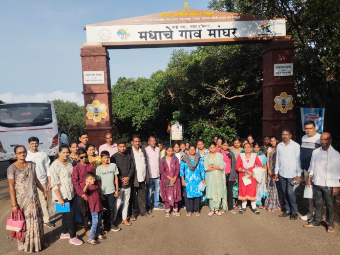 जिल्ह्यातील ४० प्रशिक्षणार्थींनी नुकतीच देशातील पहिले ‘मधाचे गाव’ म्हणून प्रसिद्ध असलेल्या मांघर (ता. महाबळेश्वर, जि. सातारा) येथे भेट दिली. या दौऱ्यात त्यांनी स्थानिक व्यवस्थापन व ग्रामस्थांकडून वर्षभरात ७ ते ८ हजार किलोपर्यंत होणाऱ्या मध उत्पादनाच्या यशस्वी कार्यपद्धतीची सविस्तर माहिती घेतली. मधसंचय, प्रक्रियेची शिस्तबद्ध पद्धत, बाजारपेठेचा अभ्यास आणि ग्रामसंघटनात्मक एकात्मतेची उदाहरणे यांचा थेट अनुभव घेत प्रशिक्षणार्थींनी आपल्या ज्ञानात मोलाची भर घातली.