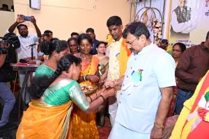 या राखीने माझ्यावर लाडक्या बहिणींचा विश्वास, प्रेम, सुरक्षितता आणि काळजी घेण्याची जबाबदारी माझ्यावर सोपविली आहे. लाडक्या बहिणींच्या कल्याणासाठी स्व. सुषमा स्वराज कौशल्य विकास केंद्राची स्थापना करण्यात आली असून, या केंद्रातून प्रशिक्षण घेतलेल्या महिला आत्मनिर्भर होत आकाशात उंच भरारी घेतील. असा विश्वास देखील आमदार श्री. सुधीर मुनगंटीवार यांनी व्यक्त केला.