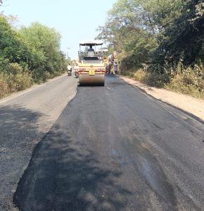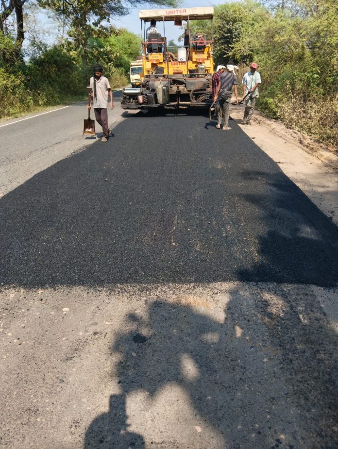 मुल-चंद्रपूर राष्ट्रीय महामार्गावर बीटी पॅचवर्क, ओव्हरले आणि थर्मो प्लास्ट पेंटिंग