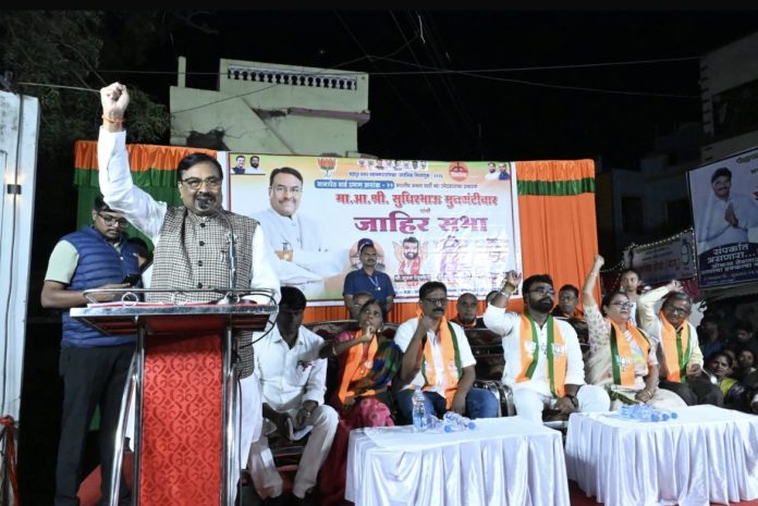 महानगरपालिकेच्या प्रभाग क्रमांक ६, ११ आणि १२ मधील भाजपा–शिवसेना-आरपीआय (आठवलेगट) महायुतीच्या उमेदवारांच्या प्रचारासाठी इंडस्ट्रियल एरिया, कन्नमवार चौक, भानापेठ वार्ड येथे आयोजित जाहीर सभेत भाजपाचे नेते आमदार श्री. सुधीर मुनगंटीवार यांनी मतदारांना ठाम शब्दांत आवाहन केले. केंद्रात, राज्यात भाजपाचे सरकार आहे. आणि आता चंद्रपूर महानगरपालिकेतही महायुतीचे सरकार असणे चंद्रपूर शहराच्या विकासासाठी अत्यावश्यक असल्याचे त्यांनी स्पष्ट केले.
