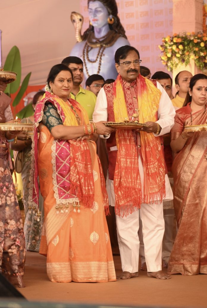 आ.सुधीर मुनगंटीवार यांच्या संकल्पनेतून लखमापूर धाम, चांदा क्लब ग्राऊंड येथे आयोजित भव्य श्रीरामकथेचा आज, गुरुवार दि. २२ जानेवारी रोजी महाआरतीने दिमाखदार समारोप झाला. गेल्या नऊ दिवसांपासून सुरू असलेल्या या अध्यात्मिक ज्ञानयज्ञाने चंद्रपूरसह संपूर्ण विदर्भाचे वातावरण राममय केले.
