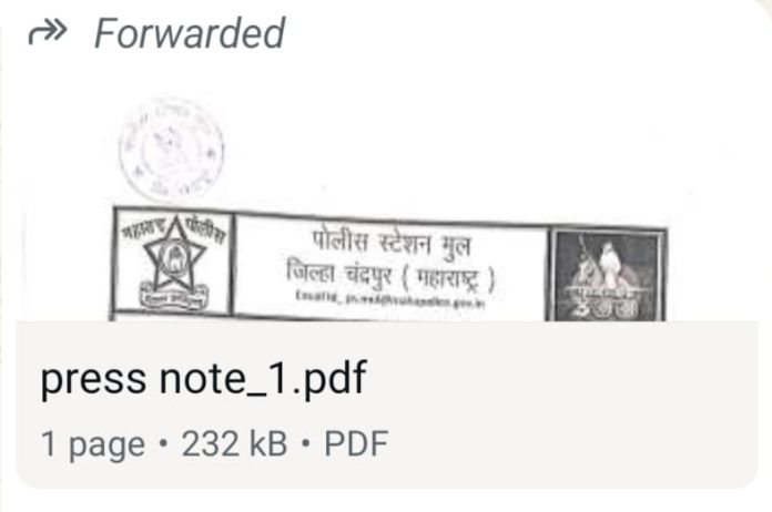 पो नि विजय राठोड व रायटर पो हवालदार रूपेश मुल्लेमवार यांनी नागभीड पो स्टे अप क्र 75 / 2024 कलम 302 अन्वये आरोपी नामे अंबादास लक्ष्मण तलमले रा मौशी ता नागभीड जि चंद्रपुर याने पत्नीने दारू पिण्याकरीता पैसे दिले नाही त्याने पत्नी व दोन मुलींच्या डोक्यावर क़ुर्हाडीने मार करून त्यांची हत्या दिनांक 03 / 03 /2024 रोजी केली होती . सदर प्रकरणात पो निरीक्षक विजय राठोड यांनी चंद्रपुर जिल्हा न्यायालयात दोषारोपपत्र दाखल केले होते .