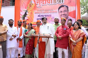 चंद्रपूर शहरातील गांधी चौक येथे गुढीपाडवा निमित्त आयोजित कार्यक्रमात ते बोलत होते. यावेळी महापौर संगीताताई खांडेकर, उपमहापौर प्रशांत दानव, जेष्ठ नेते प्रमोद कडू, महामंत्री डाॅ. मंगेश गुलवाडे, राहुल पावडे, रामपाल सिंग, विजय राऊत, विशाल निंबाळकर, नगरसेविका जयश्री जुमडे, सविता सरकार, सुनीता जयस्वाल, नगरसेवक प्रज्वलंत कडू, रवी लोणकर भाजपा पदाधिकारी व कार्यकर्ते मोठ्या संख्येने उपस्थित होते.गुढीपाडव्याच्या निमित्त आयोजित कार्यक्रमात बोलताना आ. मुनगंटीवार म्हणाले की, हा सण केवळ परंपरेचा भाग नसून नव्या संकल्पांचा दिवस आहे. साखरेच्या गाठीचा गोडवा आणि कडुलिंबाच्या पानांचा कडवटपणा जीवनातील वास्तव दर्शवतात. सुख-दुःख स्वीकारत नव्या उमेदीने पुढे जाण्याची प्रेरणा या सणातून मिळते. प्रभू श्रीरामांनी वनवास पूर्ण करून अयोध्येत परतल्यानंतर विजयाचे प्रतीक म्हणून गुढी उभारण्यात आली, ही परंपरा आजही प्रेरणादायी आहे.